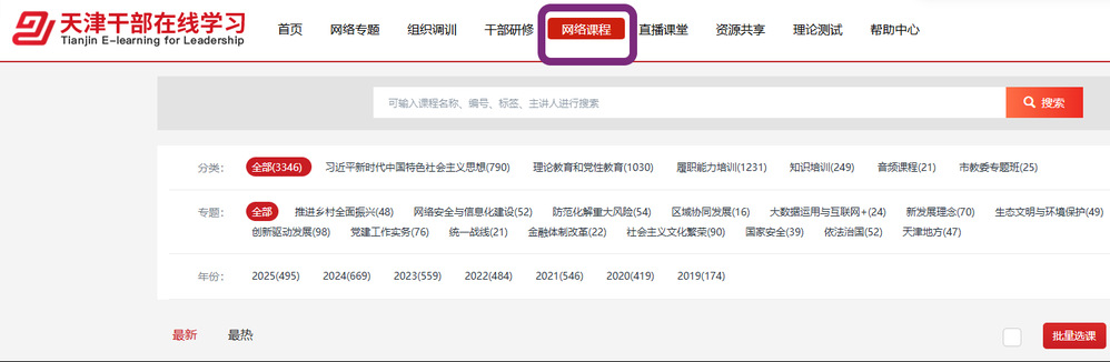 登录天津干部在线学习平台(网址:https://www.tjgbpx.gov.cn/#/)或天津干部在线学习APP,点击:网络课程,自主选课后进行在线学习。